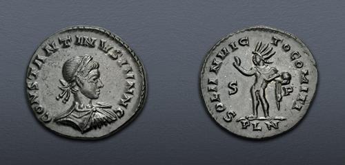 Electronic Auction 586 Lot: 727. Constantine II. As Caesar, AD 316-337. Æ Follis (20.5mm, 3.72 g, 12h). Treveri (Trier) mint, 1st officina. Struck under Constantine I, AD 317-318. EF.