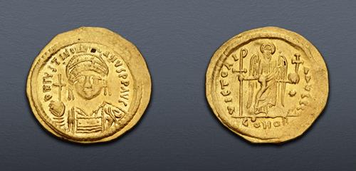Electronic Auction 586 Lot: 753. Justinian I. 527-565. AV Solidus (20.5mm, 4.31 g, 6h). Constantinople mint, 3rd officina. Struck 527-537. Good VF.