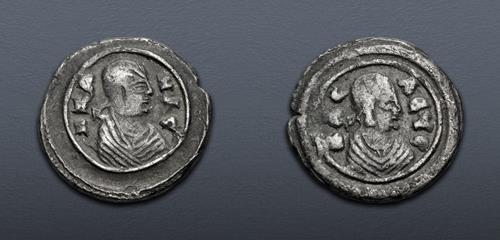 Electronic Auction 586 Lot: 759. Constans II. 641-668. AR Half Siliqua (10.5mm, 0.58 g, 6h). Carthage mint. Struck 641-647. Good VF.