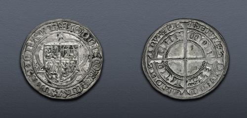Electronic Auction 586 Lot: 1020. PORTUGAL, Kingdom. João I o Bom (the Good). 1385-1433. BI Meio real cruzado (22mm, 1.97 g, 2h). Lisboa (Lisbon) mint. Struck 1407-1414. VF.