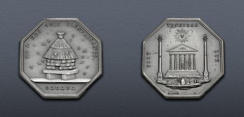Electronic Auction 586 Lot: 1034. FRANCE, Royal (Restored). temp. Louis XVIII. 1814-1824. AR Jeton (30mm, 16.23 g, 12h). Orient des Amis Bienfaisants. By Obin. Early 20th century restrike of a circa 1816 original. UNC.