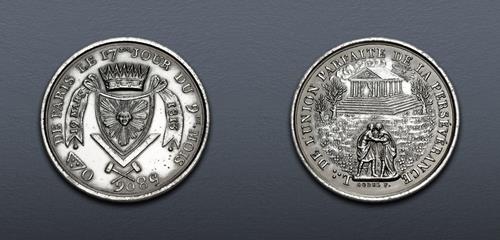 Electronic Auction 586 Lot: 1035. FRANCE, Royal (Restored). temp. Louis XVIII. 1814-1824. AR Jeton (31mm, 14.77 g, 12h). Orient de Paris, l’union parfaite de la perseverance. By Godel. Dated 19 March 1813, though an early 20th century restrike. UNC.
