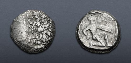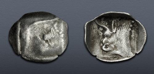 Lot: 137. IONIA, Teos. Circa 500-450 BC. AR Tetartemorion (6.5mm, 0.21 g). VF.