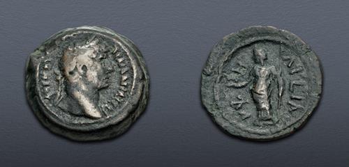 Electronic Auction 587 Lot: 582. EGYPT, Alexandria. Hadrian. AD 117-138. Æ Dichalkon (12mm, 0.88 g, 11h). Dated RY 10 (AD 125/6). Good VF.