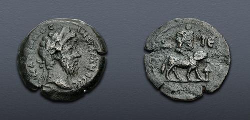 Electronic Auction 587 Lot: 616. EGYPT, Alexandria. Marcus Aurelius. As Caesar, AD 139-161. Æ Hemidrachm (29.5mm, 13.44 g, 12h). Dated RY 12 of Antoninus Pius (AD 148/9). VF.