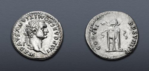 Electronic Auction 587 Lot: 723. Titus. AD 79-81. AR Denarius (18.5mm, 3.27 g, 6h). Rome mint. Struck 1 January-30 June AD 80. VF.