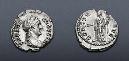 Electronic Auction 587 Lot: 793. Crispina. Augusta, AD 178-182. AR Denarius (17mm, 2.12 g, 6h). Rome mint. Struck under Commodus. VF.