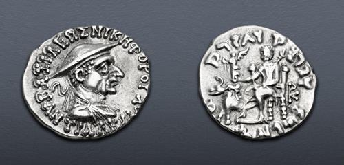 Electronic Auction 587 Lot: 420. BAKTRIA, Indo-Greek Kingdom. Antialkidas Nikephoros. Circa 130-120 BC. AR Drachm (18.5mm, 2.44 g, 11h). VF.