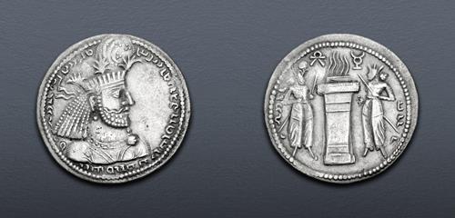 Electronic Auction 587 Lot: 434. SASANIAN KINGS. Vahrām (Bahram) I. AD 273-276. AR Drachm (28mm, 4.22 g, 3h). Style A/c. ‘Ctesiphon’ mint. Good VF.