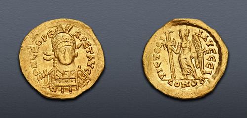 Electronic Auction 587 Lot: 977. VISIGOTHS, Gaul. Pseudo-Imperial coinage. AV Tremissis (13mm, 1.48 g, 6h). In the name of Byzantine emperor Anastasius (492-518). Toulouse or Narbonne mint. Good VF.