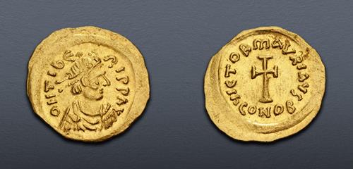 Electronic Auction 587 Lot: 933. Maurice Tiberius. 582-602. AV Solidus (16.5mm, 4.46 g, 6h). Carthage mint. Dated IY 1 (597/8). Good VF.