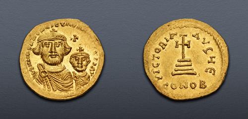 Electronic Auction 587 Lot: 941. Heraclius, with Heraclius Constantine and Heraclonas. 610-641. AV Solidus (18.5mm, 4.34 g, 6h). Constantinople mint, 1st officina. Struck circa 639-641. Near EF.
