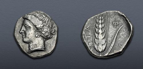 Electronic Auction 587 Lot: 33. LUCANIA, Metapontion. Circa 400-340 BC. AR Nomos (21mm, 7.59 g, 7h). Good Fine.