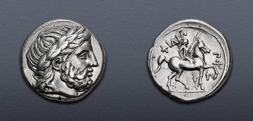 Lot: 3. EASTERN EUROPE, Imitations of Philip II of Macedon. 2nd-1st centuries BC. AR Tetradrachm (33mm, 12.71 g, 6h). Zeuskopf/Henkelarmreiter type. Struck in Carpathian region. VF.