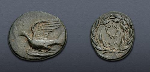 Lot: 182. SIKYONIA, Sikyon. Circa 330-310/05 BC. Æ Dichalkon or Tetartemorion (16.5mm, 3.62 g, 6h). Eu–, magistrate. Good VF.