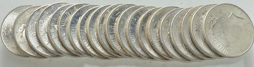 Electronic Auction 588 Lot: 931. 1924 Peace Dollars. One original Uncirculated roll of twenty (20) coins.