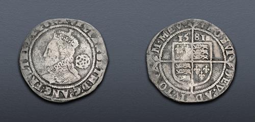 Electronic Auction 588 Lot: 968. TUDOR. Elizabeth I. 1558-1603. AR Sixpence (25mm, 2.49 g, 2h). Fifth issue. Tower (London) mint; im: Latin cross. Dated 1581. Fine.