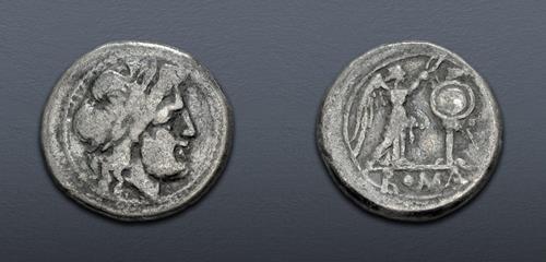 Electronic Auction 588 Lot: 448. Anonymous. 115-114 BC. AR Denarius (19mm, 3.81 g, 10h). Unmarked series. Rome mint. Near VF.