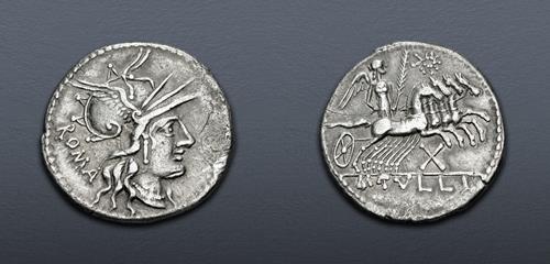Electronic Auction 588 Lot: 447. M. Tullius. 119 BC. AR Denarius (20.5mm, 3.77 g, 3h). Rome mint. VF.