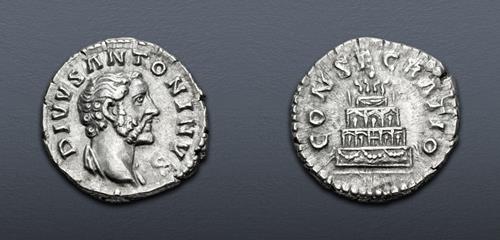 Electronic Auction 588 Lot: 557. Divus Antoninus Pius. Died AD 161. AR Denarius (17mm, 3.10 g, 6h). Consecration issue. Rome mint. Struck under Marcus Aurelius and Lucius Verus, AD 161. Good VF.