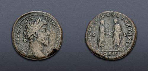 Electronic Auction 588 Lot: 567. Marcus Aurelius. As Caesar, AD 139-161. Æ Sestertius (32mm, 26.76 g, 5h). Rome mint. Struck under Antoninus Pius, AD 159-160. Near VF.