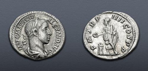 Electronic Auction 588 Lot: 621. Severus Alexander. AD 222-235. AR Denarius (19mm, 3.20 g, 8h). Rome mint. 15th emission, AD 232. EF.