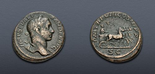 Electronic Auction 588 Lot: 645. Gallienus. AD 253-268. Æ Sestertius (28mm, 15.95 g, 12h). Rome mint. 1st emission of Valerian and Gallienus, AD 253-254. Near VF.