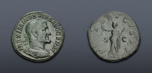 Electronic Auction 588 Lot: 633. Maximinus I. AD 235-238. Æ Sestertius (31mm, 20.44 g, 12h). Rome mint. 3rd emission, late AD 236-237. Near VF.