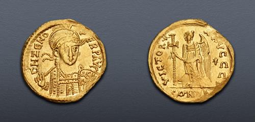 Electronic Auction 588 Lot: 746. OSTROGOTHS. Theoderic. 493-526. CU Decanummium (16mm, 3.16 g, 6h). Rome mint. NGC VF, 4/5, 1/5.
