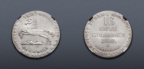 Electronic Auction 588 Lot: 810. GERMANY, Hannover (Kingdom). Georg IV. King of Great Britain & Hannover, 1820-1830. AR 16 Gute Groschen (30mm, 11.78 g, 12h). Clausthal mint. Dated 1833. NGC MS 63.