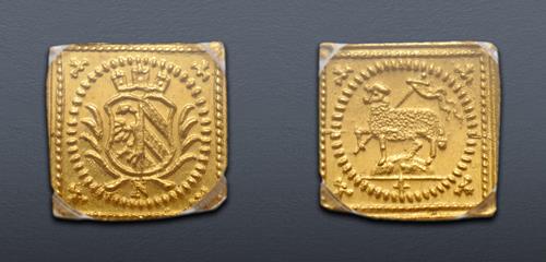 Electronic Auction 588 Lot: 812. GERMANY, Nürnberg (city). AV 1/8 Dukat Klippe (8mm, 12h). Struck 1700. PCGS Genuine, filed rims.