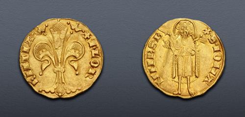 Electronic Auction 588 Lot: 830. ITALY, Firenze. Republic. 1189-1532. AV Fiorono d’oro (20mm, 3.54 g, 12h). Tano di Chiarissimo, mintmaster. Segno: spada (sword). 1st semester, 1334. VF.