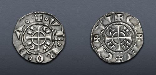 Electronic Auction 588 Lot: 807. FRANCE, Provincial. Normandie (Duchy). Henri I Beauclerc–Étienne I. 1106-1144. AR Denier (18mm, 1.09 g). Rotomagus (Rouen) mint. Struck circa 1130-1145. VF.
