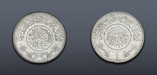 Electronic Auction 588 Lot: 876. SAUDI ARABIA, Kingdoms of Hejaz & Nejd. 'Abd al-'Aziz. AH 1344-1351 / AD 1926-1932. AR Riyal (36mm, 23.97 g, 12h). Dated AH 1346 (AD 1927/8). EF.