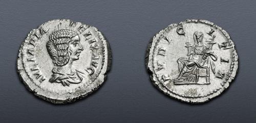 Electronic Auction 589 Lot: 603. Julia Domna. Augusta, AD 193-217. AR Denarius (18.5mm, 2.96 g, 6h). Rome mint. Struck under Caracalla, AD 215-217. Superb EF.