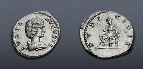 Electronic Auction 589 Lot: 601. Julia Domna. Augusta, AD 193-217. AR Denarius (20mm, 3.92 g, 12h). Rome mint. Struck under Caracalla, AD 211-215. Superb EF.