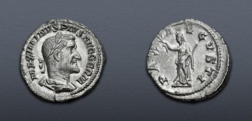 Electronic Auction 589 Lot: 635. Maximinus I. AD 235-238. AR Denarius (19mm, 3.39 g, 12h). Rome mint. 2nd emission, AD 236. Superb EF.