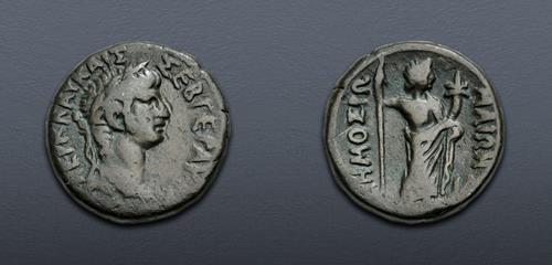 Electronic Auction 589 Lot: 427. JUDAEA, Herodians. Agrippa II, with Vespasian. Circa 50-100 CE. Æ 8 or 10 Units (29mm, 14.85 g, 12h). Caesarea Panias mint. Dated RY 27 of the first era of Agrippa II (75/6 CE). Good VF.