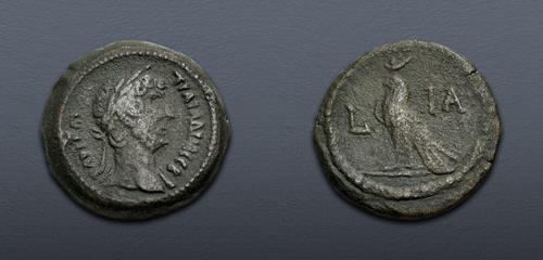 Electronic Auction 589 Lot: 471. EGYPT, Alexandria. Hadrian. AD 117-138. Æ Dichalkon (12mm, 1.39 g, 9h). Dated RY 11 (AD 126/7). VF.