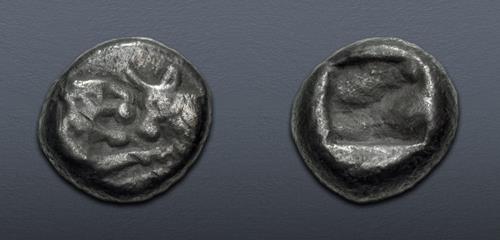Electronic Auction 590 Lot: 239. KINGS of LYDIA. Kroisos. Circa 564/53-550/39 BC. AR Twelfth Stater (8.5mm, 0.87 g). Sardes mint. VF.