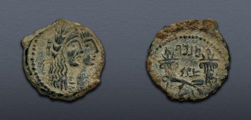 Electronic Auction 590 Lot: 301. NABATAEA. Malichos II, with Shuqailat II. AD 40-70. Æ (15.5mm, 2.98 g, 12h). Petra mint. Good VF.