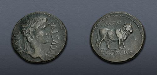 Electronic Auction 590 Lot: 340. IBERIA, Carthago Nova. Gaius (Caligula), with Caesonia. AD 37-41. Æ As (27mm, 12.44 g, 9h). Gnaeus Atellius Flaccus and Gnaeus Pompeius Flaccus, duoviri quinquennali. Near VF.