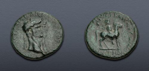 Electronic Auction 590 Lot: 405. CORINTHIA, Corinth. Domitian. AD 81-96. Æ Assarion (20mm, 5.73 g, 6h). Near VF.