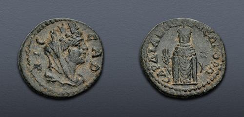 Electronic Auction 590 Lot: 467. LYDIA, Gordus-Julia. Plotina. Augusta, AD 105-123. Æ (18mm, 3.05 g, 12h). Publius, magistrate. Struck under Trajan. Good Fine.