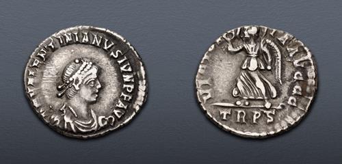 Electronic Auction 513 Lot: 486. Valentinian II. AD 375-392. AR Siliqua (18mm, 1.87 g, 6h). Treveri (Trier) mint. Struck AD 375-383.