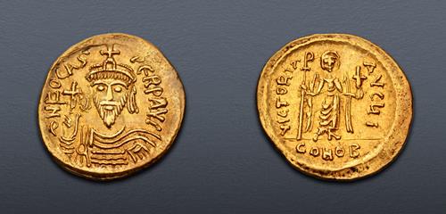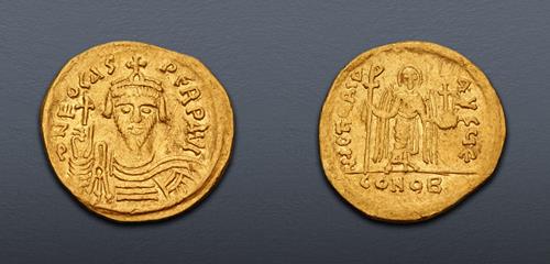 Electronic Auction 513 Lot: 499. Phocas. 602-610. AV Solidus (20mm, 4.41 g, 6h). Constantinople mint, 10th officina. Struck 607-609.