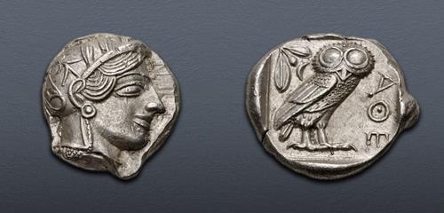 Lot: 195. SAMARIA, Pseudo-Athenian Series. Circa 375-333 BC. AR Obol (8.5mm, 0.74 g, 3h). Imitating Athens.