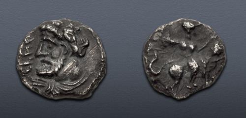 Lot: 162. CILICIA, Uncertain. 343-332 BC. AR Obol (8.5mm, 0.56 g, 8h).