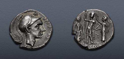 Electronic Auction 524 Lot: 409. L. Memmius. 109-108 BC. AR Denarius (19mm, 3.95 g, 7h). Rome mint. In NGC encapsulation 3591125-037, graded Ch XF, Strike: 4/5, Surface: 5/5.