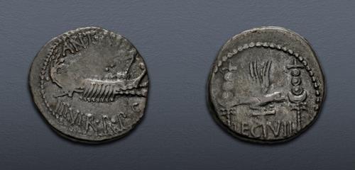 Electronic Auction 524 Lot: 450. The Triumvirs. Mark Antony. Autumn 32-spring 31 BC. AR Denarius (18mm, 3.07 g, 5h). Legionary type. Patrae(?) mint. Fine.